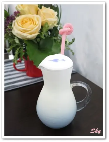 飲品幾靚, 杯底是淡淡的藍色, 漸漸是雪白色.