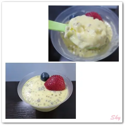 芒果布甸幾清新, 甜甜酸酸, 好適合依加的天氣食, 當中還混入了奇亞籽, 更加健康.