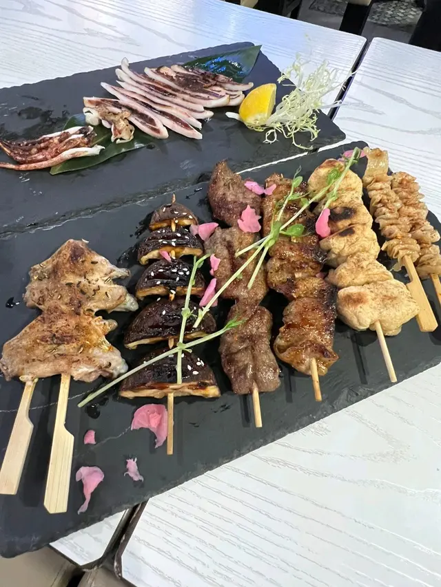 鹽燒牛舌厚度適中,有濃郁既牛味又吾會韌。蜜糖芝士腸外脆內軟。花枝丸入面真係有花枝粒,鮮味。雞皮香脆唔油又卜卜脆。燒雞翼皮外脆內軟。山椒豬頸肉,燒到金黃色微脆,醃料仲好好味😍