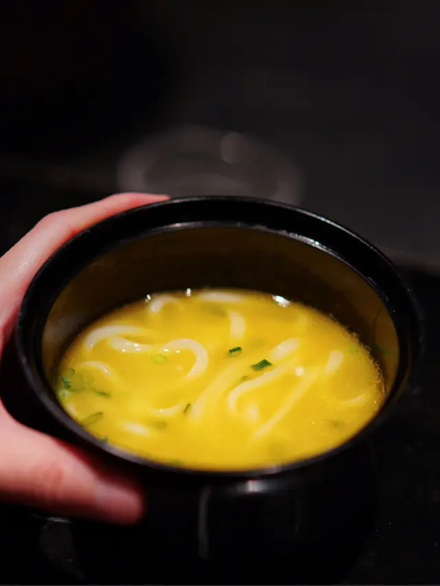 極濃雞湯鳥冬,是用雞骨熬出的高湯,加入了一些鳥冬,很Q彈,很有嚼勁。湯的顏色很深,味道很濃郁,有雞肉的鮮味,也有一點點的甜味,很滋補。鳥冬的口感很好,很吸湯,很飽足。