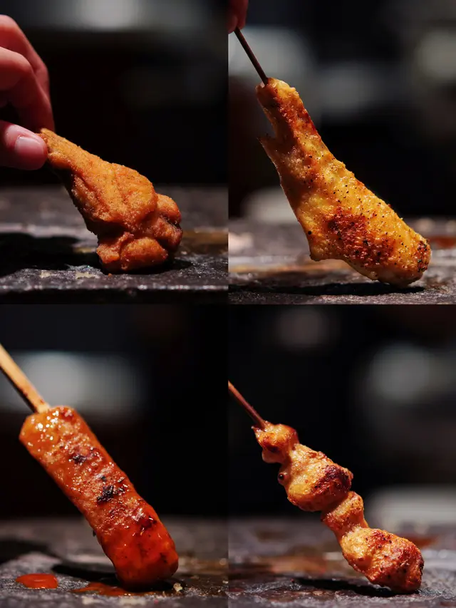 雞掌,雞掌的膠質很豐富,對皮膚很好。秋吉的雞掌烤得很入味,表面有一層焦糖色的醬汁,裡面的肉很嫩,骨頭很軟,可以一口吞下,很過癮。