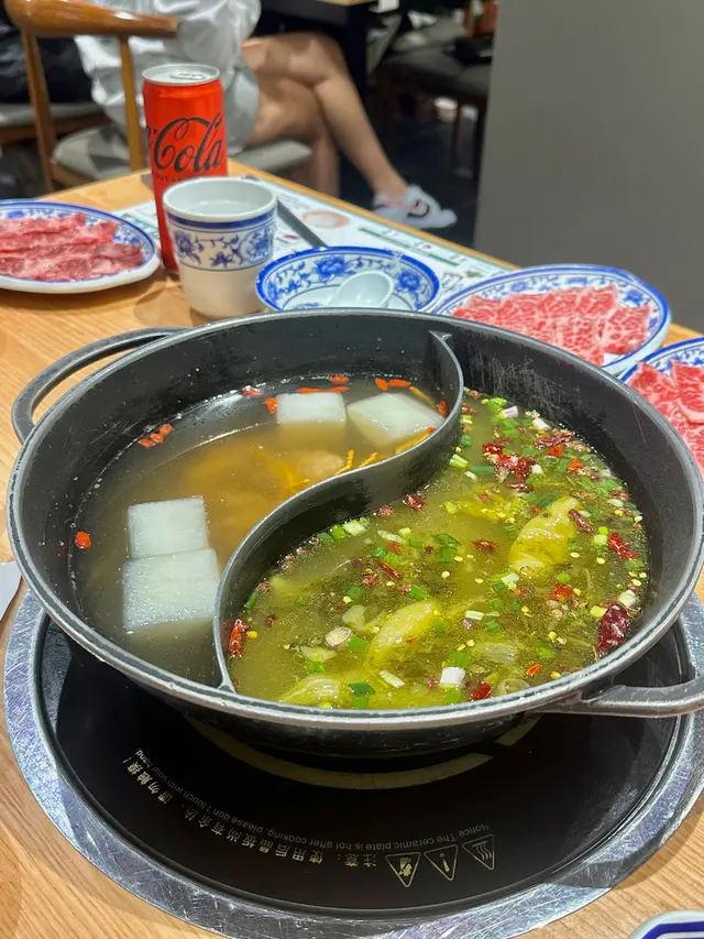 鴛鴦。冬瓜酸菜鍋(單點$88),蟲草花冬瓜雞鍋,雞件份量多,肉質嫩滑,雞味香濃,冬瓜口感軟腍,内有蟲草花、杞子;酸菜鍋,內有酸菜、辣椒乾、青花椒、芫荽香蔥,味道酸辣。