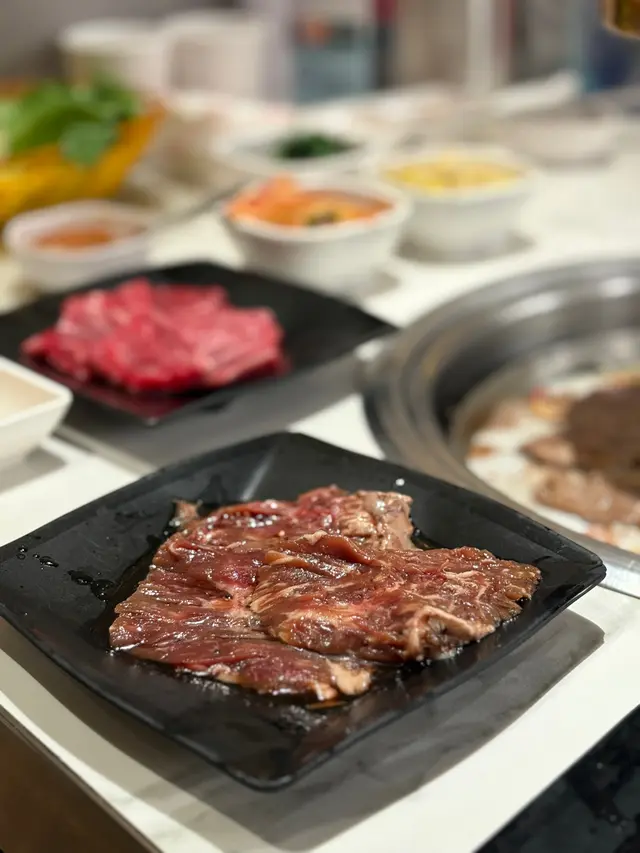 食物方面,牛肉味算濃,肥瘦纹理均匀而且肉質都唔會韌🐮最推薦係牛仔骨,肉質係最嫩口而且經過醃製帶出微甜😋另外仲有提供海鮮比你燒🐟海蝦爽口彈牙,帶子鮮甜,刺身方面三文魚最出色,色澤鮮嫩,以上海鮮食得出係新鮮,仲有其他迷你份量嘅韓式料理,等你可以有空間叫多幾款嘗試🙌🏻二百幾蚊食到咁多嘢都算唔錯👍🏻