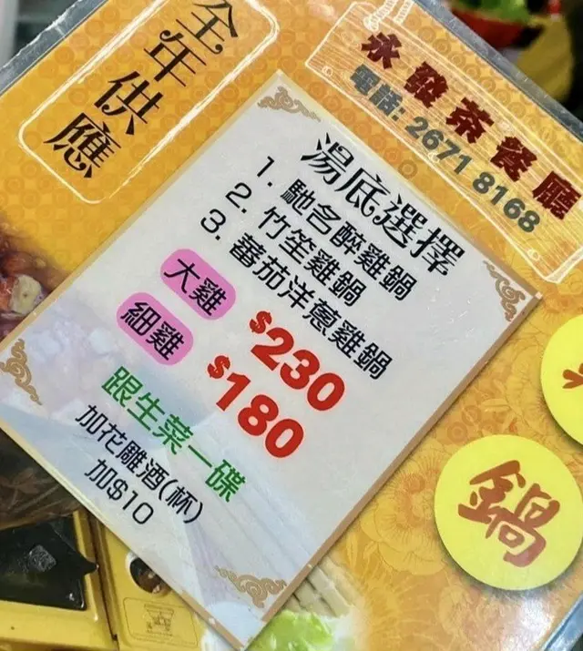 餐廳在北區可算是一間老字號, 早上七點至下午四點半跟其他茶餐廳一樣提供早午下午茶餐選擇, 但過後時段是主打雞煲邊爐為主。餐廳設有兩層裝潢設計跟舊式冰室差不多, 樓上的座位較逼及相對熱鬧。