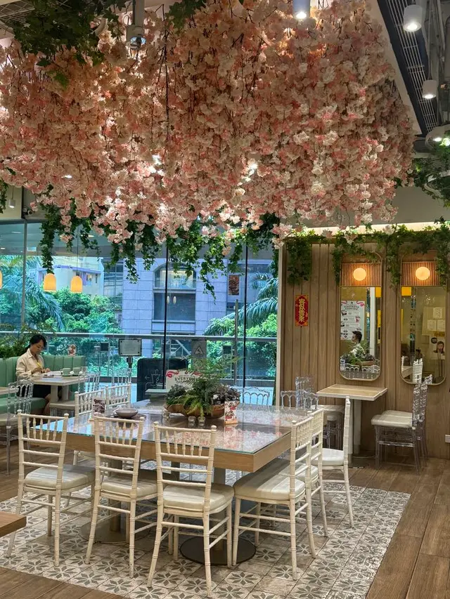 📌天花板吊滿粉紅色的乾花💐,梳化以藍綠色為主🛋️,牆身仲印有大花朵圖案🌺,成個怖局好田園少女風,係咁的氛圍下進餐真係感覺悠然自得✨。