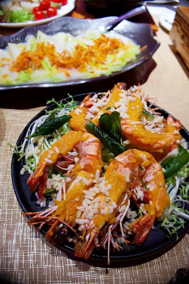 配料有虎蝦、北海道帶子、鵝肉、蟹肉、蟹籽和豬肉鬆,