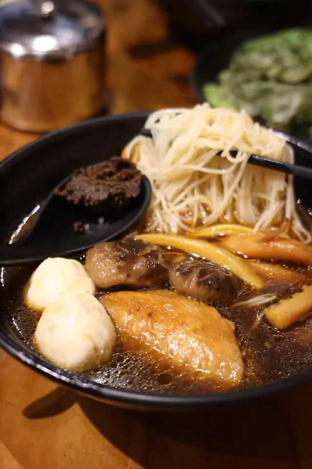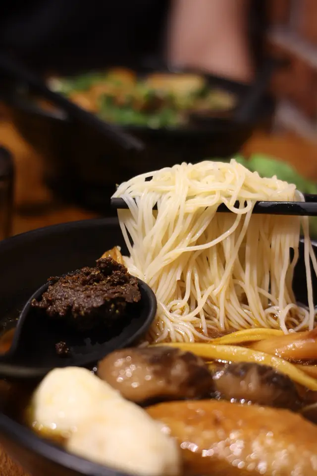 男友每次都係叫大尊幼麵配麻辣汁,完全係唔洗諗 。我就成日都轉下款,雞翼、咖喱魷魚、蠔油冬菇、同牛栢葉麵好正。雞翼皮脆肉滑,係小學時小賣部既味道!!!咖喱魷魚夠濃味唔鞋口,冬菇腍得嚟有口感,索埋啲辣汁好正