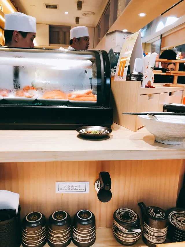 門外都裝修十分日式,已經有不少人在門外排隊,店員會比餐牌同點餐紙給你,之後你便可以先點餐先,點餐紙都壽司種類很多,而且還有小食丶甜品丶魚生那些。如果不知食什麼好,還有餐廳推介,而且有自壽司🍣對照圖,看一看壽司的樣貌同份量。