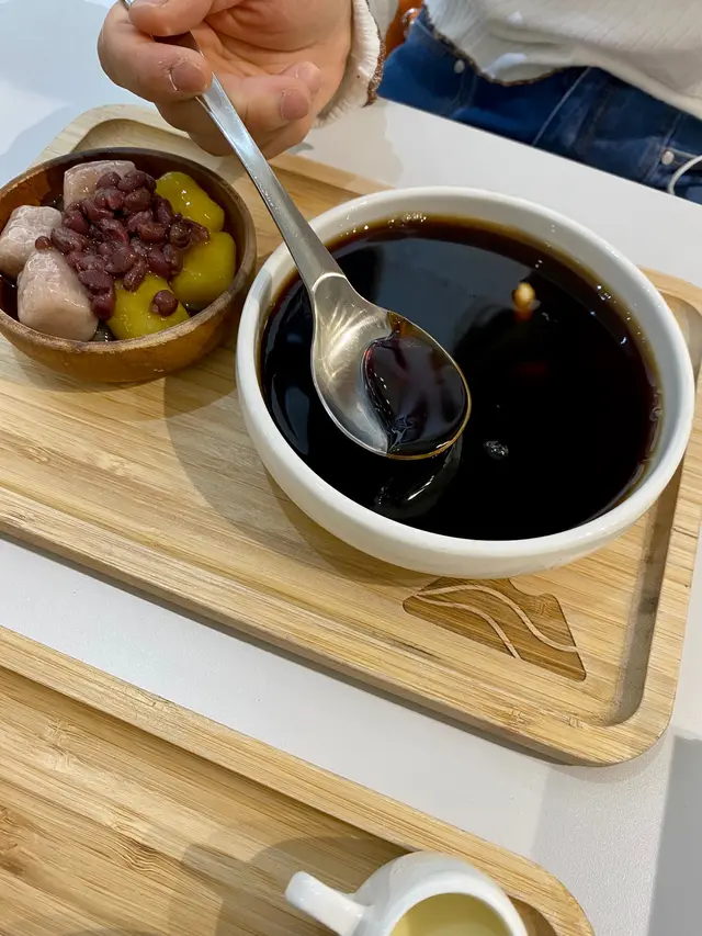 左邊是熱食燒仙草 配上幾顆軟糯的花生🥜