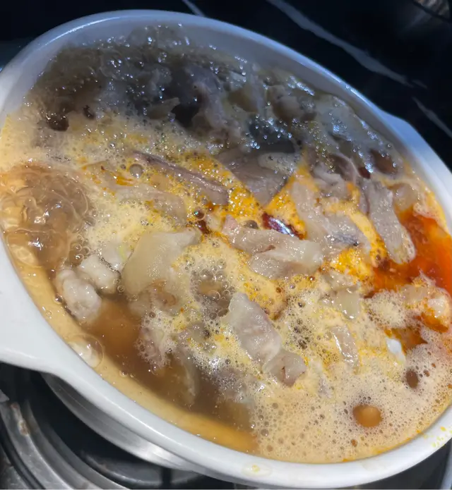 牛頭獅:其實就係牛雜火鍋。入邊有好多種唔同嘅材料,包括牛筋,牛丸,牛肚,牛舌,牛腸,豆腐,白蘿蔔等等。各款牛雜都清洗得好乾淨,冇怪味。牛筋爽口,牛丸彈牙,白蘿蔔入味冇渣。個湯底都好清甜。我哋另外仲加咗個生菜同娃娃菜,啲菜都好新鮮清甜。配埋可樂就Perfect喇。