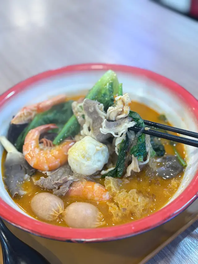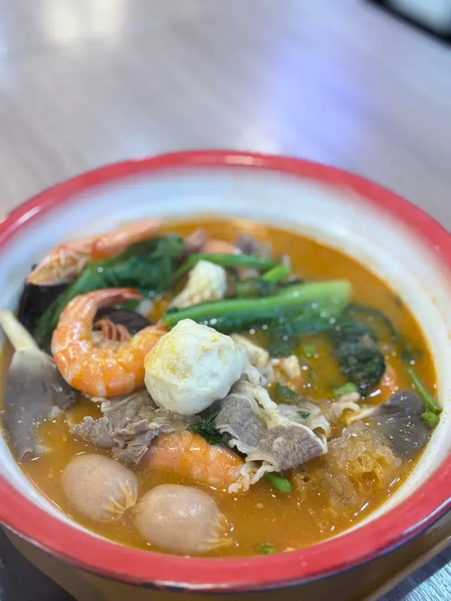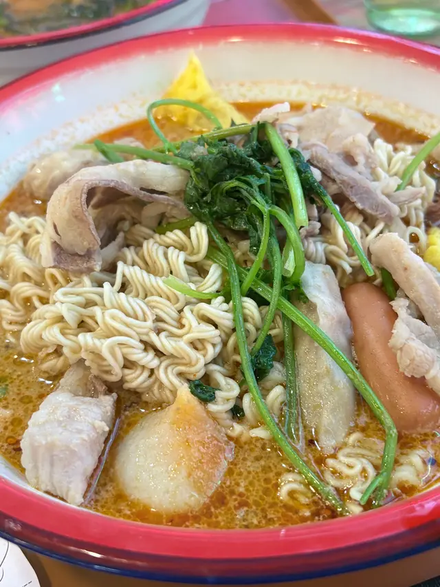 食材新鮮,不論豬肉片、魚蛋、腸仔定菜,都吸收晒湯底味精華,好入味!面條係即食泡麵風格,煮得適中有彈性。整體份量足夠,食完超有滿足感!