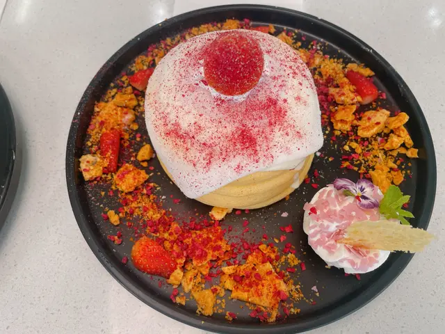 至於甜品,我就選左📍士多啤梨麻糬梳乎厘班戟配士多啤梨雪糕📍,甜品好吸引,咩姿色、外形、層次、口感完全合我心意。軟糯嘅麻糬隱藏住一個驚喜,就系雪糕,一次滿足多種口感嘅期待。😋🍨🍰