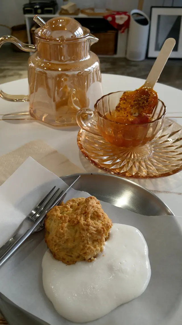 Scone 外層香脆,內裡帶濕潤綿密!忌廉少甜微暖!配合得恰到好處又好夾! 自家製有水準又有誠意!