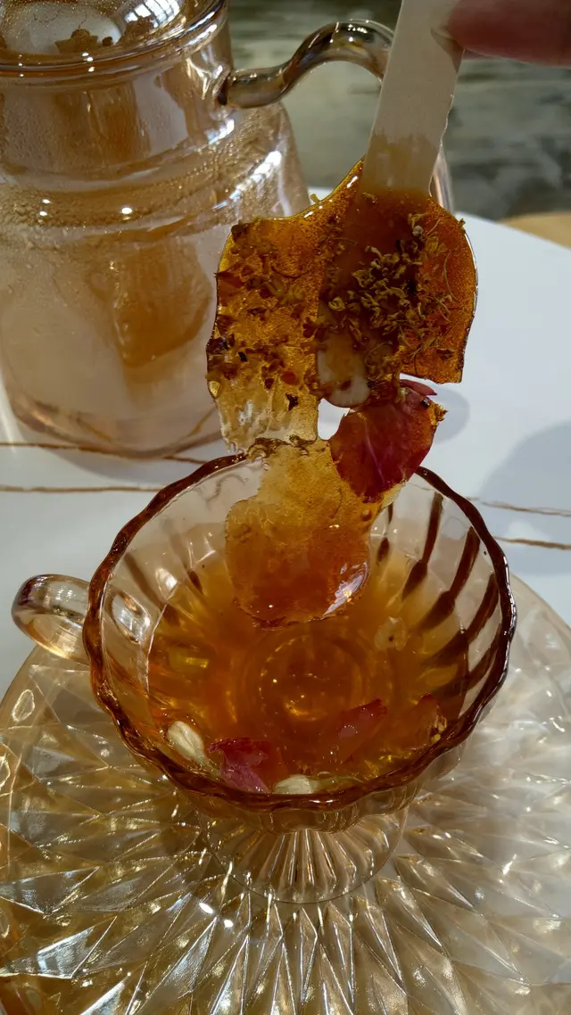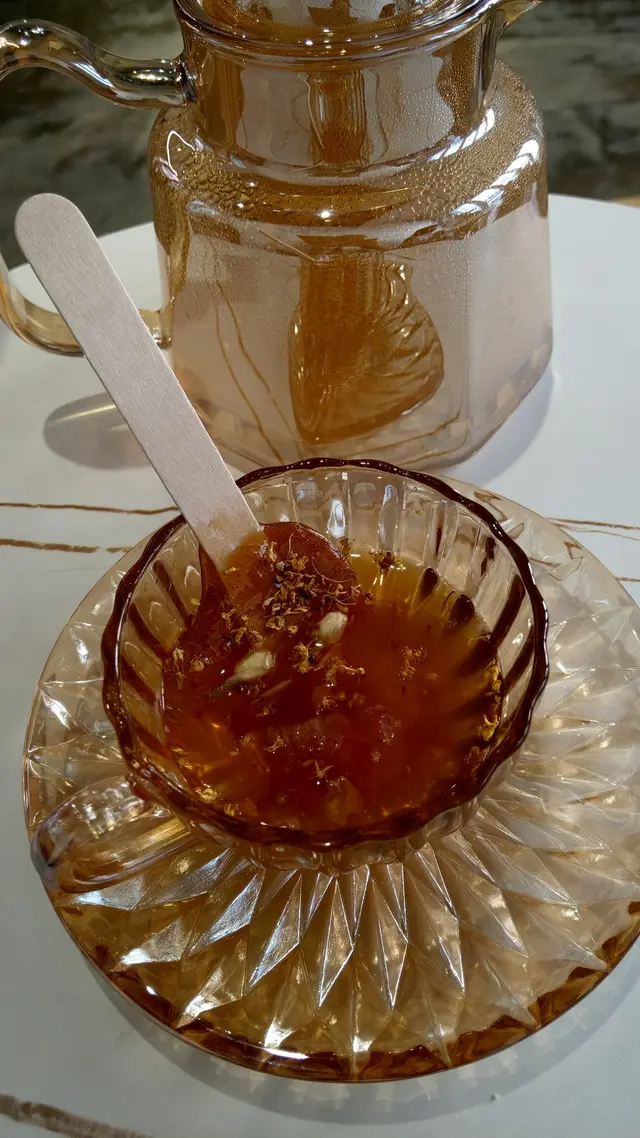 加熱水後,讓蜜糖漸漸溶化,充滿花香及滿載香甜