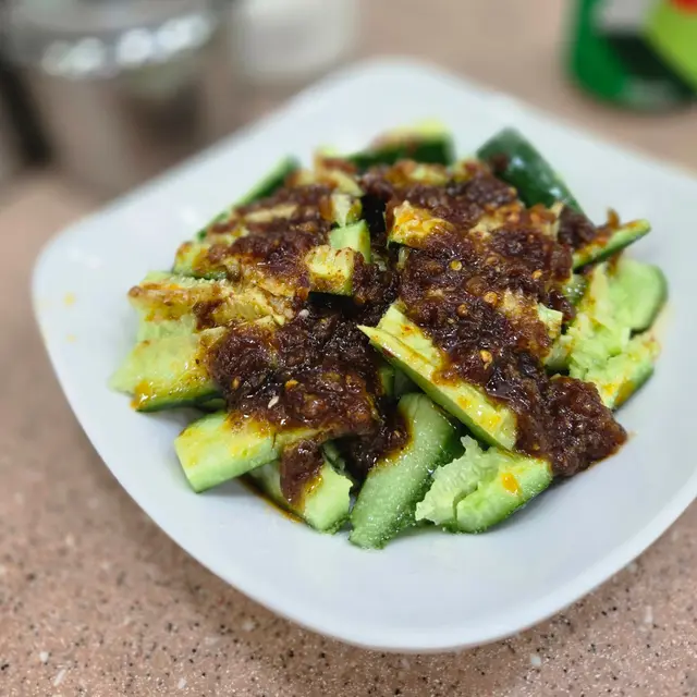 朋友蠻喜歡涼拌麻辣青瓜,因為朋友本來胃口沒有甚麼胃口,後來嚐了涼拌麻辣青瓜後,全個就被打開了,青瓜麻辣滋味恰到好處,嚼起來頗為爽口,真是配麵、配煎餃子的絕頂開胃菜,大家一定要試試看。