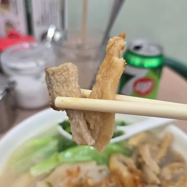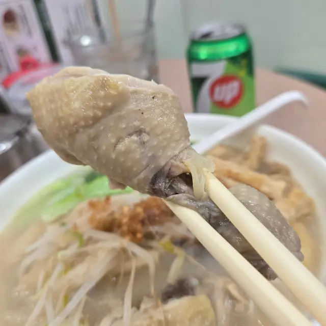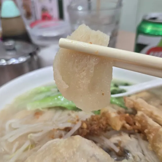 竹笙雞肉手工麵以雞隻熬煮出的湯頭,呈現誘人的乳白色,富含膠質的風味十分優秀,與手工麵的組合是絕配,讓人一口湯,一口麵完全停不下來,非常好吃。油渣乃是道地的懷舊小食,兼具口感及油香味,酥酥脆脆,油渣為竹笙雞肉手工麵畫龍點睛。