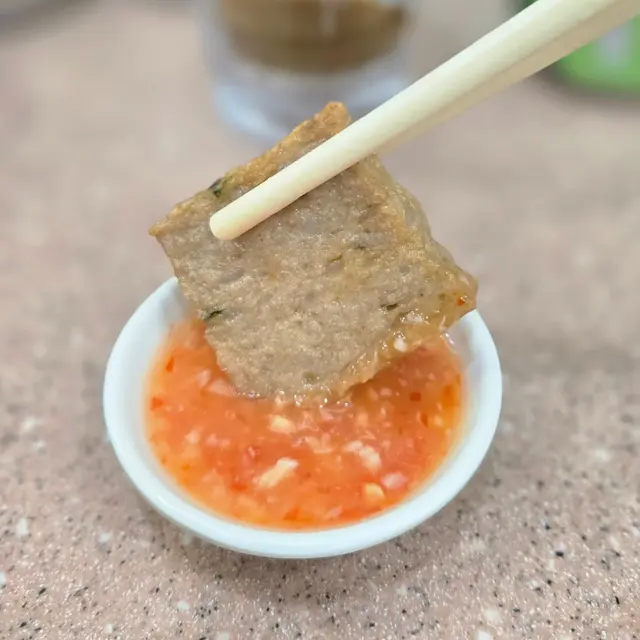 招牌扎肉上桌時有著討喜的熱度,完全沒有因為生意好而馬虎製作,確實即炸後才出餐給客人。炸過的招牌扎肉外表香脆可口,味道比較香,咀嚼時彈勁多汁,就連其醬汁亦是自家製,難怪招牌扎肉是新之食的招牌。