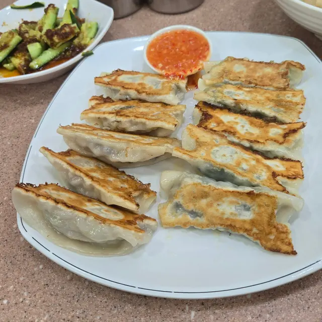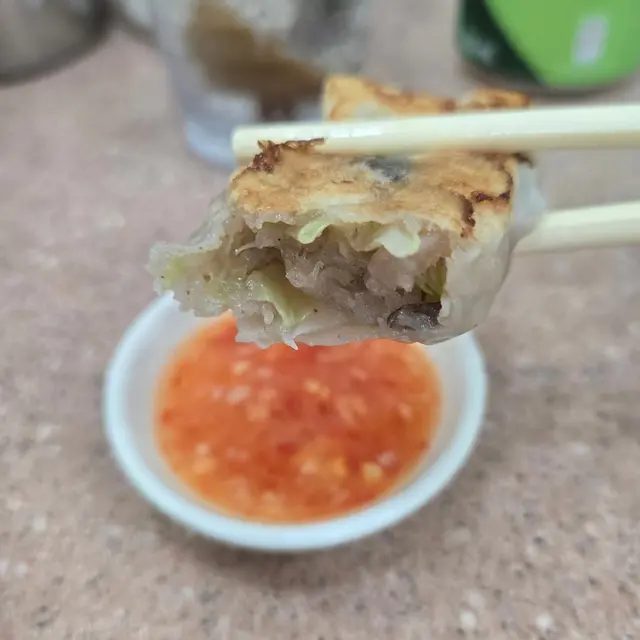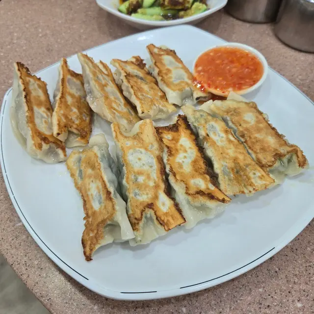 煎餃子雙拼值得講一下,這個價格可以吃到這種水準,真的便宜。煎餃子一端上桌就能看到底部煎得漂亮,整片金黃酥脆,看起來很涮嘴。咬下去的時候先是脆,再來是餡料的嫩,完全不會乾,煎餃子反而越咬越香。