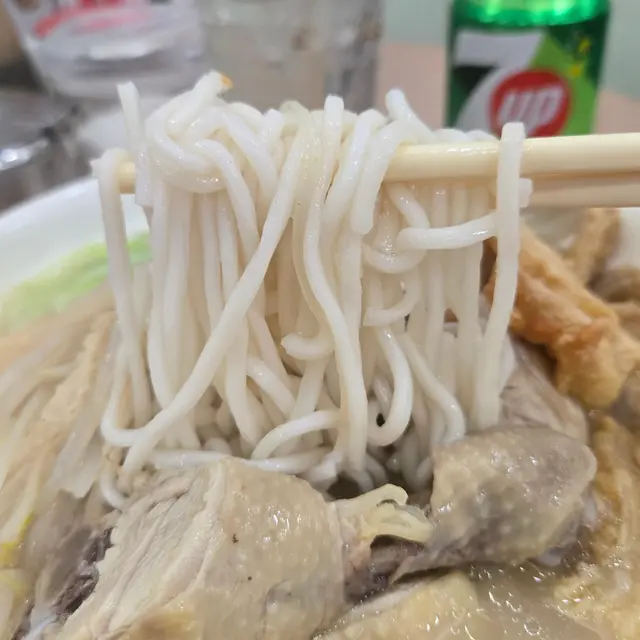 雞肉的嫩度也不錯,皮滑肉嫩,鹹香又涮嘴,這碗竹笙雞肉手工麵可說是強力推薦,為了吃這竹笙雞肉手工麵要我專程而來都沒問題。竹笙吸飽雞湯,有著神級的美味,使人不知不覺吃光光。手工麵為幼麵,富有彈性,很會吸收熱湯。