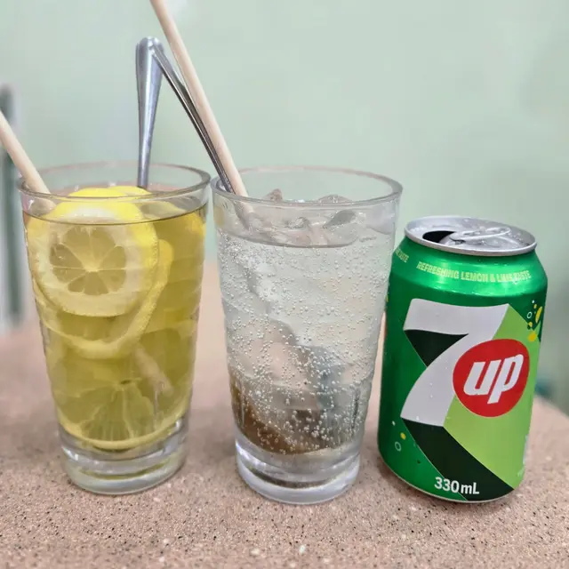 我喝咸檸七,先將七喜倒入杯中,然後戳破鹹檸檬,再攪拌一下七喜和鹹檸檬,喝進嘴裡酸甜的七喜風味,伴上尾韻的鹹檸檬鹹酸,咸檸七沁心清涼,冰爽好喝。