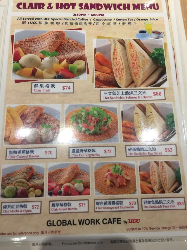 簡單的下午茶 過路貓等级42016-06-263K 浏览 关注 兩位靚靚姊妹約我星期六去食tea , 三人行食high tea比較麻煩,大部份for two多 !打算揀一間可以静静咁傾下計 ,又坐得耐嘅cafe,最後揀咗位於世貿嘅UCC 。是日靚女車去攞位先,星期六都蠻多人㗎 ,等咗20分鐘左右先入座。我放工趕到來,已經無晒沙律bar啦,不過下午茶時段有几款tea set供應……11.海鮮意大利燴飯(龍蝦汁)($74) :) : 海鮮唔多,得兩隻蝦、几件魷魚圈、三件西蘭花及蕃茄等。飯粒比較濕潤腍身。海鮮意大利燴飯(龍蝦汁)$742.照燒雞肉三文治($72) :) : 雞肉切薄片,肉質偏乾 !好在三文治有烘底 ,脆脆地好食啲!照燒雞肉三文治$723.綠茶紅豆法式多士($69) :) : 多士口感似西多士,只是西多嘅花生醬+牛油換咗做綠茶雪糕+忌廉紅豆啫!可惜紅豆蓉實在太少了 !綠茶紅豆法式多士$69每款tea set包咖啡/紅茶/橙汁。我地三個都不約而同地揀最健康嘅橙汁嚟飲 !橙汁傾下坐下,咁就4點几,都几hea㗎!以上食记乃用户个人意见 , 并不代表OpenRice之观点。15分享簡單的下午茶 Global Work Cafe by UCC https://s.openrice.com/QrLT0zzI9m0检举 张贴 评分3味道3环境3服务3卫生2抵食用餐日期2016-06-25等候时间20 分钟 (堂食)人均消费$80 (下午茶)