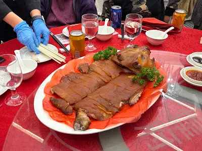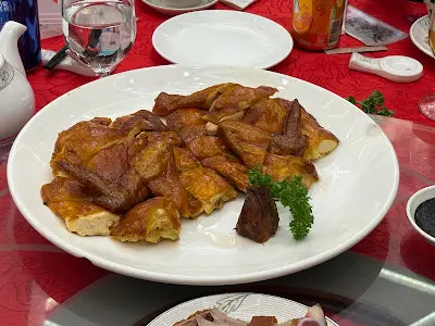 一見到雞,就是席宴的尾聲了。他們做的招牌醬燒脆皮雞,肉嫩而香滑,皮脆而充滿雞油,即場吃及拿回家焗熱再吃,都依然皮脆可口。