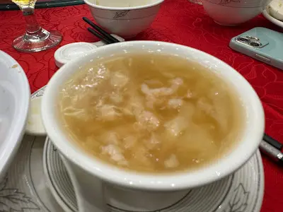 宴席的湯羹是紅燒竹笙海皇燕窩。說真,吃這些燕窩羹,在味道上同魚翅沒有分別。再加上整得好的燕窩羹,都是爽爽口的那個感覺。本身,個套餐是包翅的,但,現在大部份人對食魚翅有意見 (包括我),所以,我改燕窩。