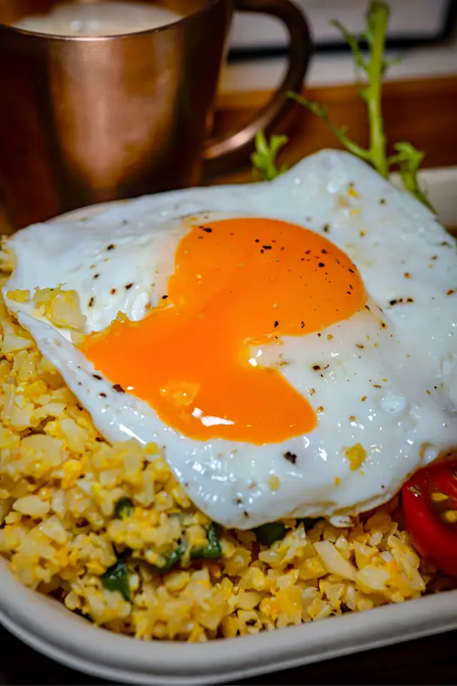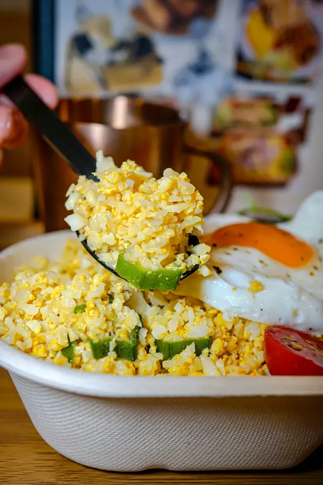 配埋隻流心太陽蛋(+$5),再當你知道唔喺飯而喺椰菜花碎嗰陣,伴隨着陣陣蛋香🍳,你就會無顧忌咁喺咁食停唔到口🤤