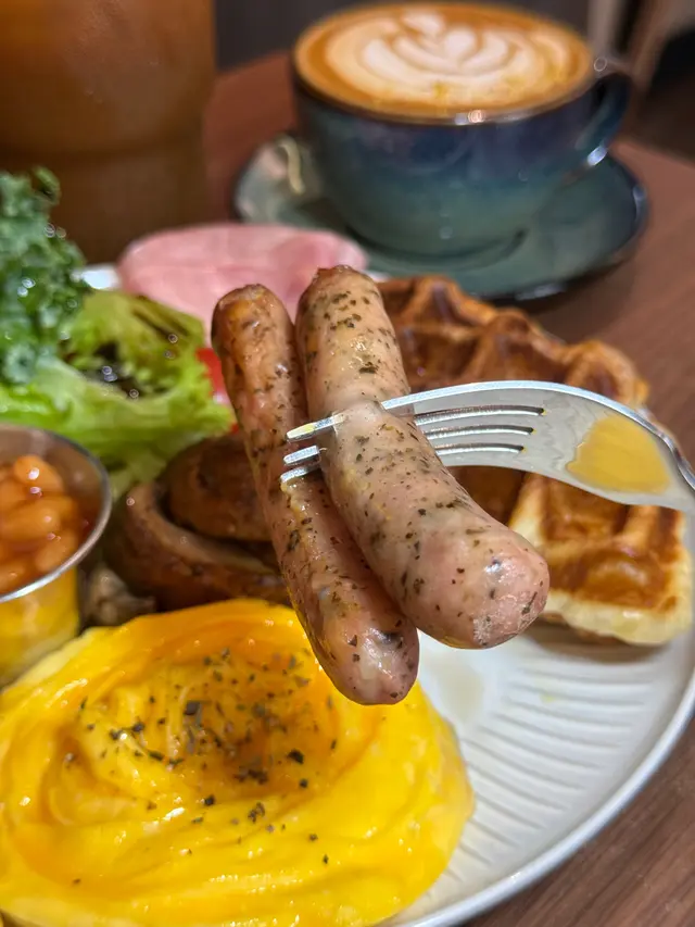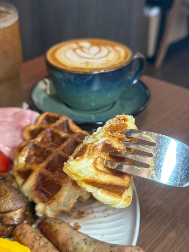 個炒蛋整得好靚又滑,仲有我最愛嘅的炸薯餅,腸仔打孖上食特別滿足😙,牛角窩夫好香好脆~ 正!