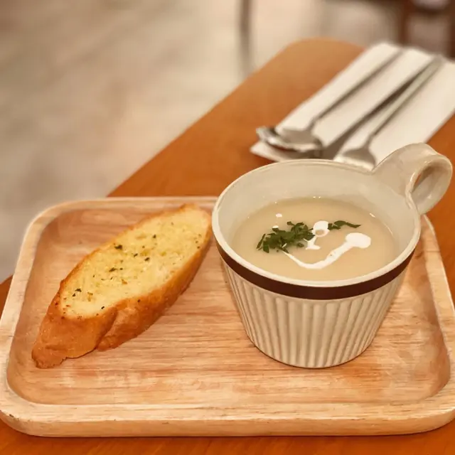Set dinner包左薯仔洋葱忌廉餐湯&蒜蓉餐包!