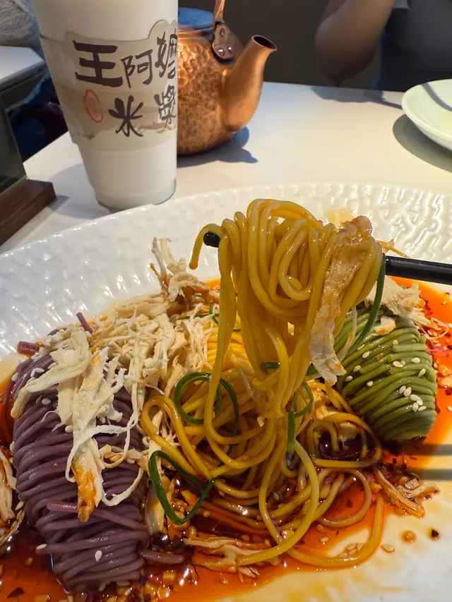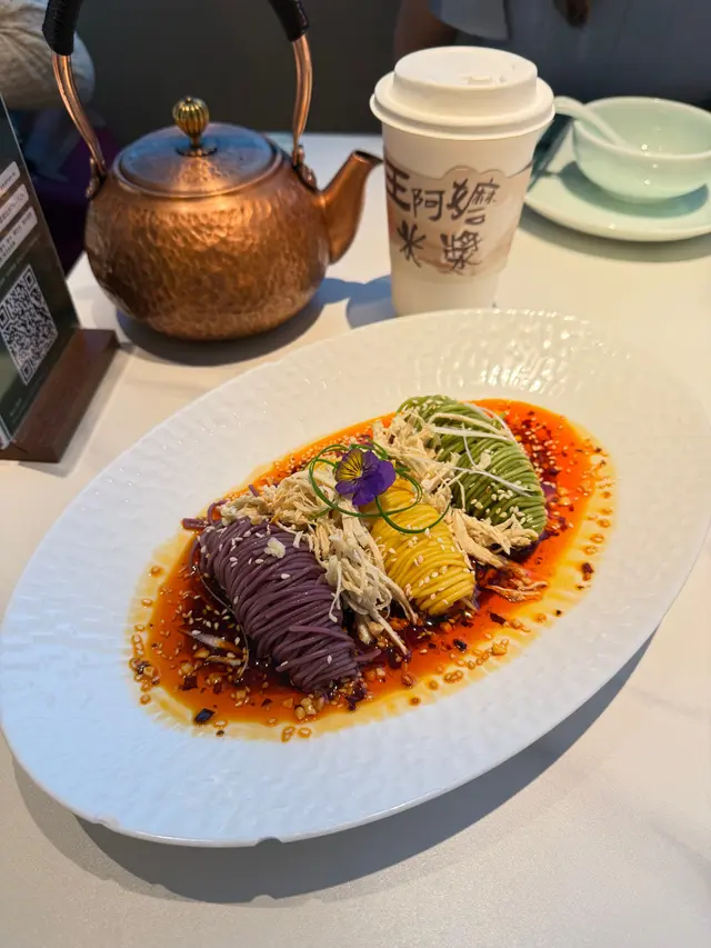 呢個賣相好色彩繽紛,三種味道嘅涼麵配上口水雞味嘅雞絲,兩面伴上醬汁,辣得來又幾清爽。