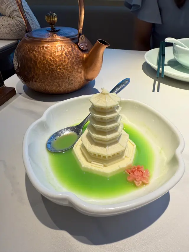 呢個係甜品,西湖塔賣相好精緻,啱晒打卡,佢係類似奶凍咁樣, Creamy幼滑,唔會好甜,係清新嘅甜品。