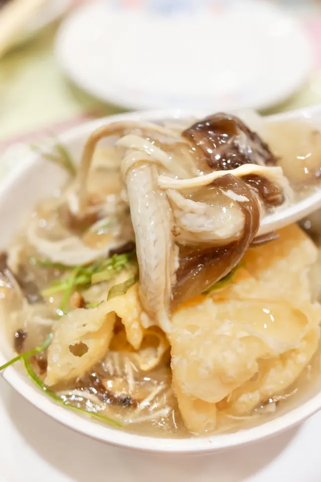 招牌蛇羹非常足料,材料有蛇肉、木耳絲、果皮、筍絲、竹蔗、果皮及火腿,湯色清澈而且濃稠適中,入口香滑又有咬口。