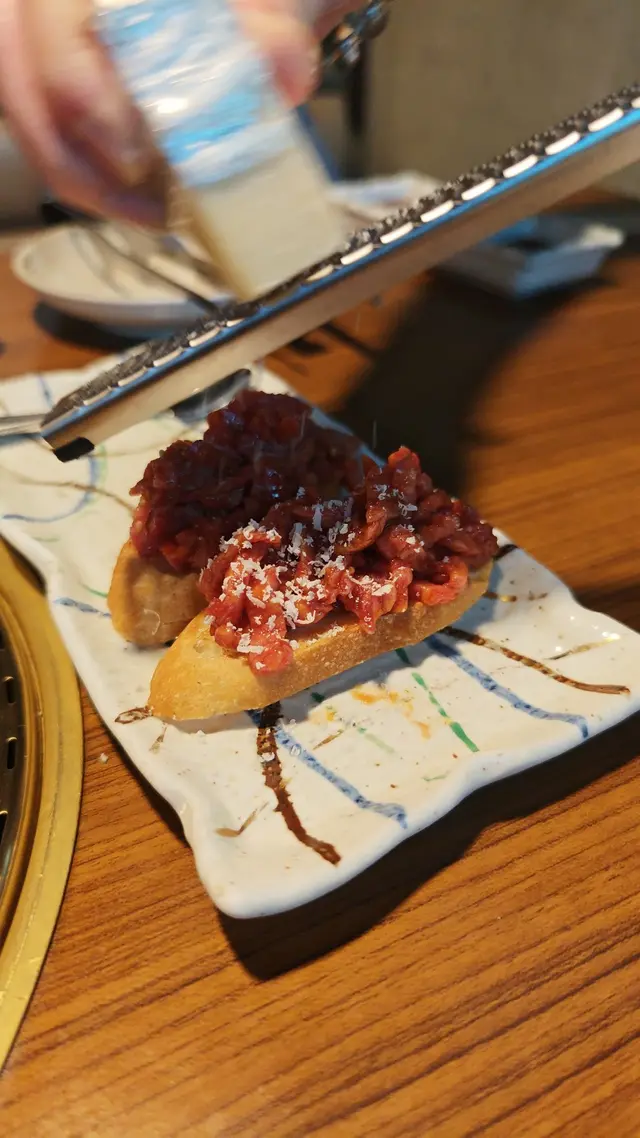 和牛他他用咗切成絲嘅宮崎和牛,牛肉味濃,配埋脆脆法包同芝士,真係好開胃!