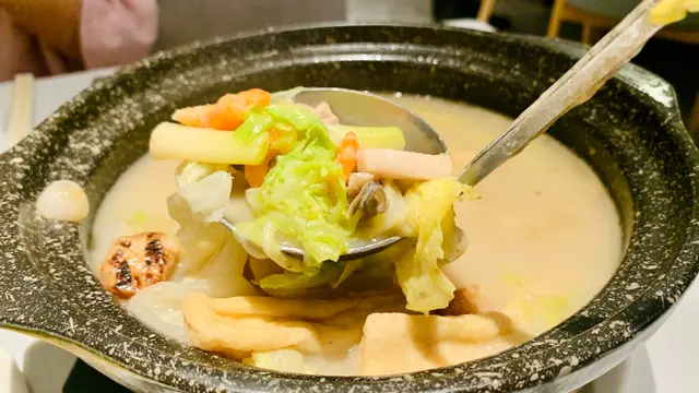大白菜燉軟豆腐係一鍋上的,可以飲埋湯,湯味道清甜,入面除了多軟淋豆腐外仲有好多菜、蠔仔、蜆、蟶子,拍得住海鮮湯。石鍋上熱辣辣夠暖胃