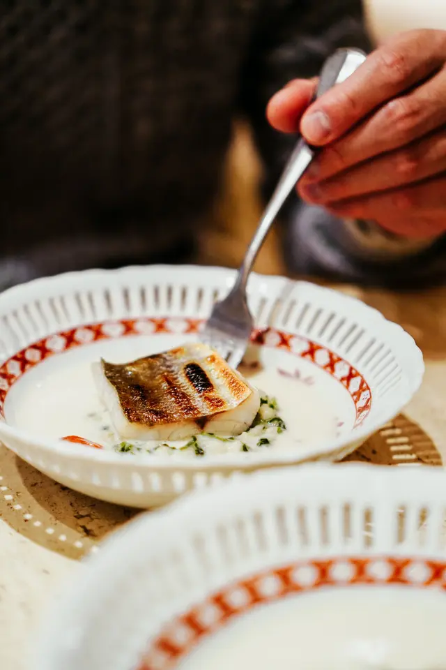 ♥ Fresh Fish of the Day with Yellow Wine Fish Bone Broth, Preserved Mustard Green and Soft Tofu Skin