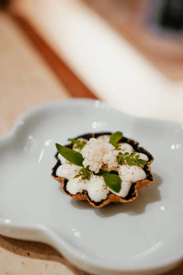 ♥ Bean Curd Skin Tart with Soy Cauliflower Cream, Pickled Cauliflower and Seaweed