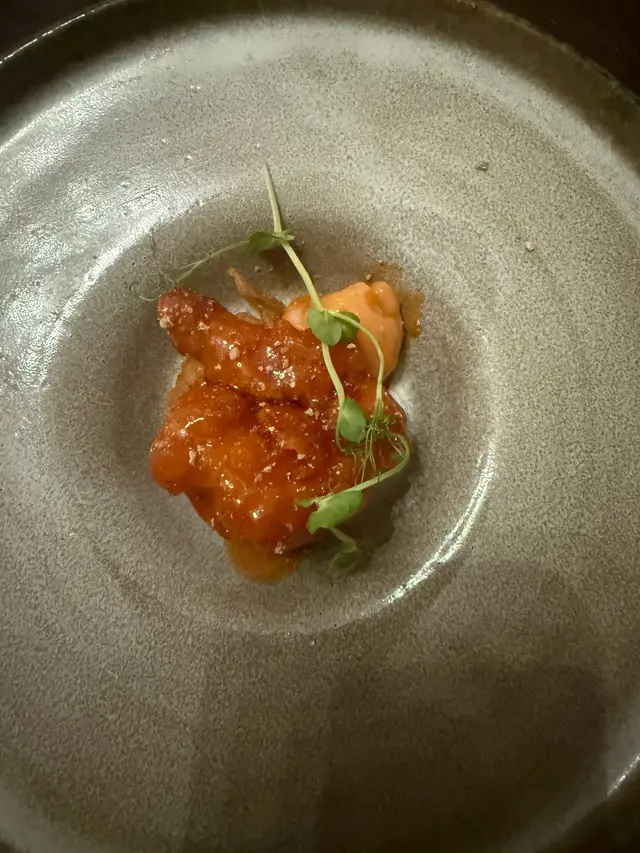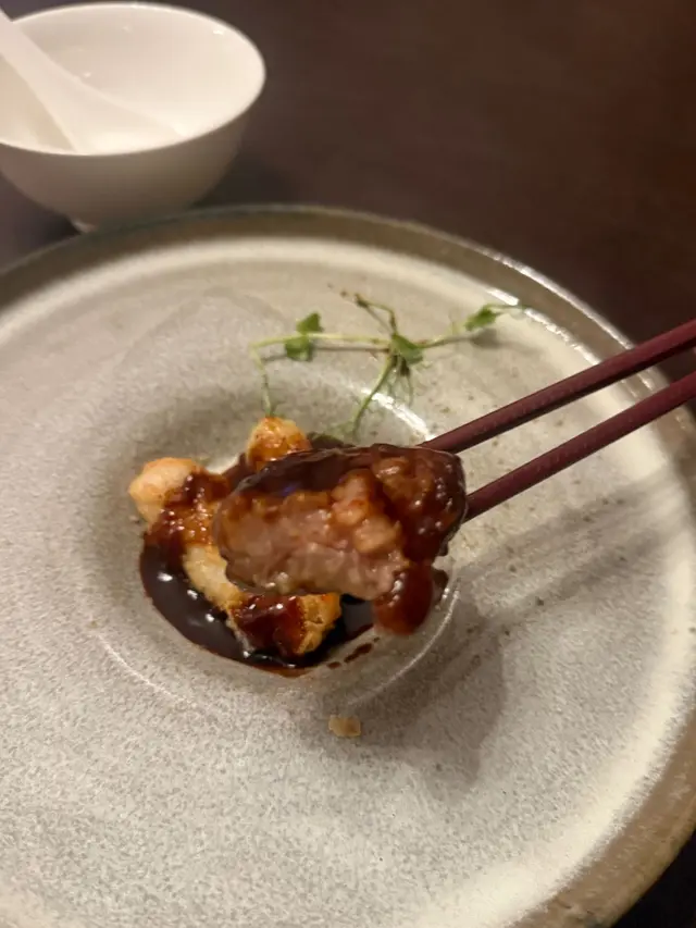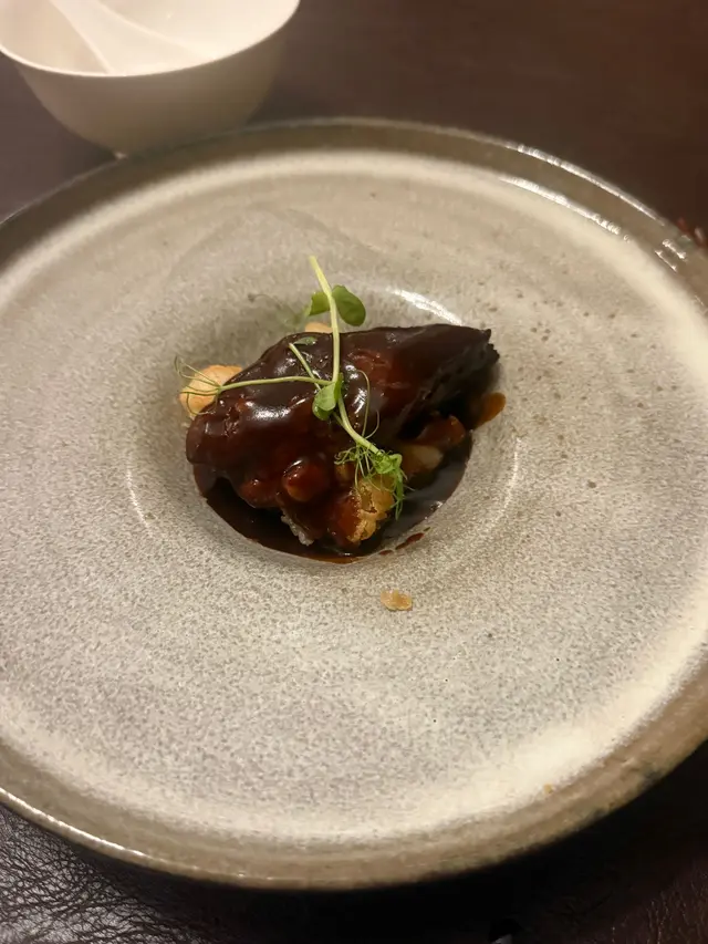 首道 「金腿蟹肉燴冬蓉羹」 一上桌,香氣已令人傾心。湯羹質地綿密細滑,冬瓜蓉熬至幾乎化開,入口即融,卻仍保留一絲清甜。金華火腿的鹹香與新鮮蟹肉的鮮甜相互交融,勾勒出深邃的層次感,輕嚐一口,溫潤而不膩,彷彿冬日中的暖陽,既舒心又滿足。這道湯羹盡顯粵菜對湯品火候的執著,堪稱宴席的完美開場。