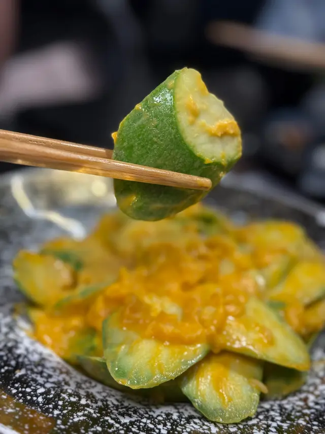 翠玉瓜炒得嫩滑保水,金沙鹹蛋黃炒得金香撲鼻,面頭加咗脆米增添層次,一咬落去「卡滋卡滋」,香、滑、脆三重奏!好啱配飯/當小炒都一流~份量足夠三人share!😋
