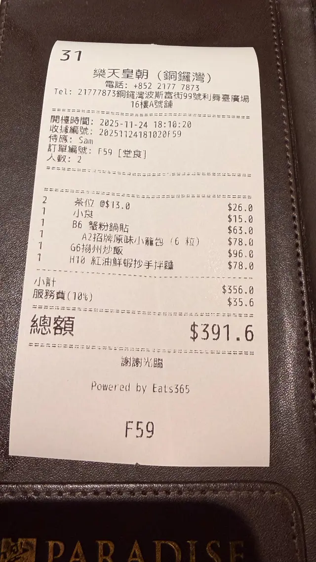 精緻上海菜❤️ Carrie1119等级42025-12-02 关注 最近同屋企人黎左樂天皇朝食上海野🤤全新裝修後好光猛,坐得都好舒服☺️價錢合理,餐點嘅款式都好多🥰🌸蟹粉鍋貼,底部煎到金黃香脆,咬落入面有滿滿嘅蟹油😍肉汁同蟹香融合,口感脆卜卜😋🌸原味小籠包,皮薄❤️入口湯汁鮮甜,肉質好嫩😋每一粒都爆哂汁🙌🏻🌸楊州炒飯,飯粒粒粒分明,蛋香,叉燒蝦仁仲有芥蘭粒粒🤩食落好有層次💕食落唔會膩🙌🏻🌸紅油鮮蝦抄手拌麵,抄手皮薄餡足,蝦仁爽口彈牙😍紅油香辣但唔會蓋過鮮味🤤麵條辣香中帶酸醋味,好開胃🙌🏻以上食记乃用户个人意见 , 并不代表OpenRice之观点。赞好分享精緻上海菜❤️ 樂天皇朝 (利舞臺廣場) https://s.openrice.com/QrLT0O6jV00检举 张贴 评分5味道5环境5服务5卫生5抵食用餐途径堂食
