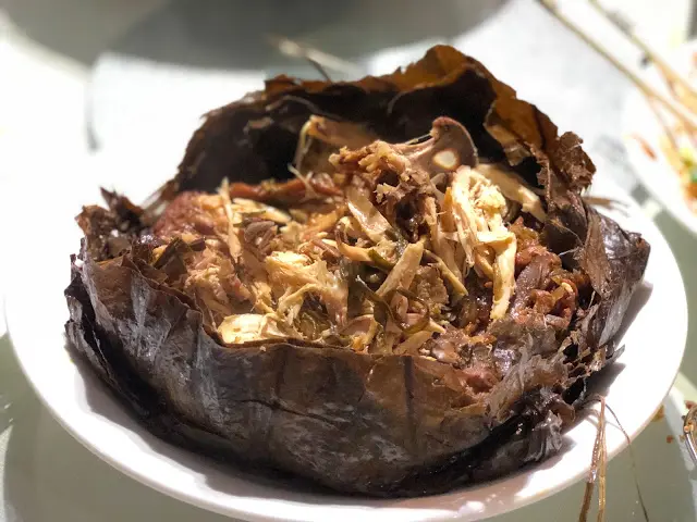 甫打開錫紙後還有荷葉包裹著香氣撲鼻的平原雞,內裡是鮮嫩酥化入味的雞肉挺而且重口味呢!有機會要品嚐埋幸運平原雞先得。