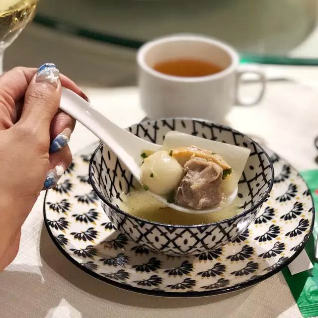 接著給我發現這兒有農家鹹湯圓$108,任性的我硬要點來品嚐多謝好友成人之美!須然不是我小時候婆婆弄給我的味道,但這碗鹹湯圓湯頭香濃鮮甜亦十分好味!內裡還有蘿蔔、蝦乾、香菇、豬肉、芹菜等配料,而湯圓口感軟糯不黏牙沒帶一絲粉味水準十分之高。