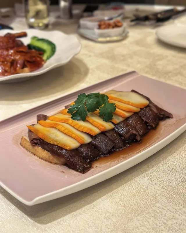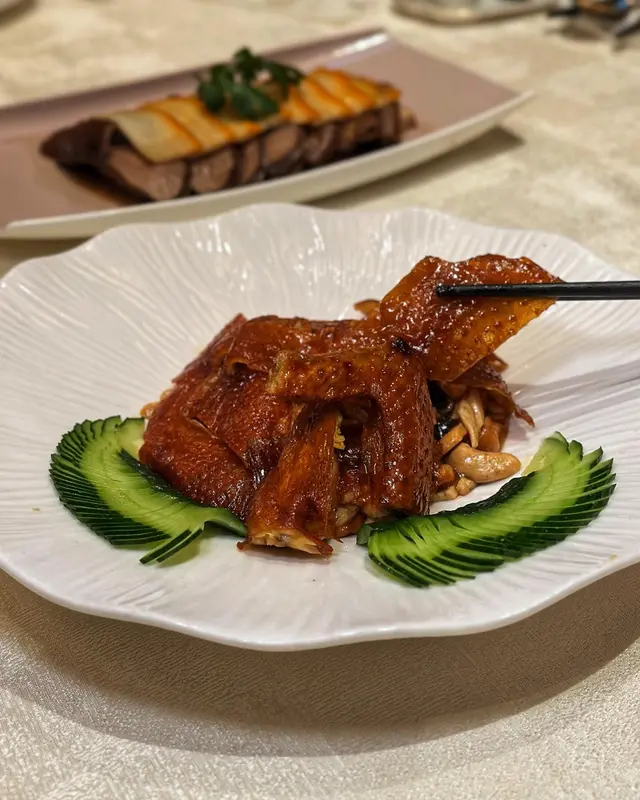另一道巧手菜式,大廚將雞皮切得非常薄,入口香脆,底層係八寶餡料如合桃、腰果及西梅乾等,連同鮮嫩嘅雞肉一齊食,口感非常豐富!