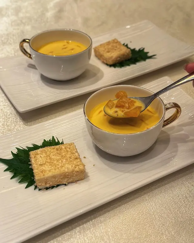 最後嘅鴛鴦甜品,分別有加咗哈密瓜嘅新派楊枝甘露同埋第一次試嘅豆磚奶酪佐麥皮,唔算太甜太膩,為呢餐私房菜畫上圓滿嘅句號😌
