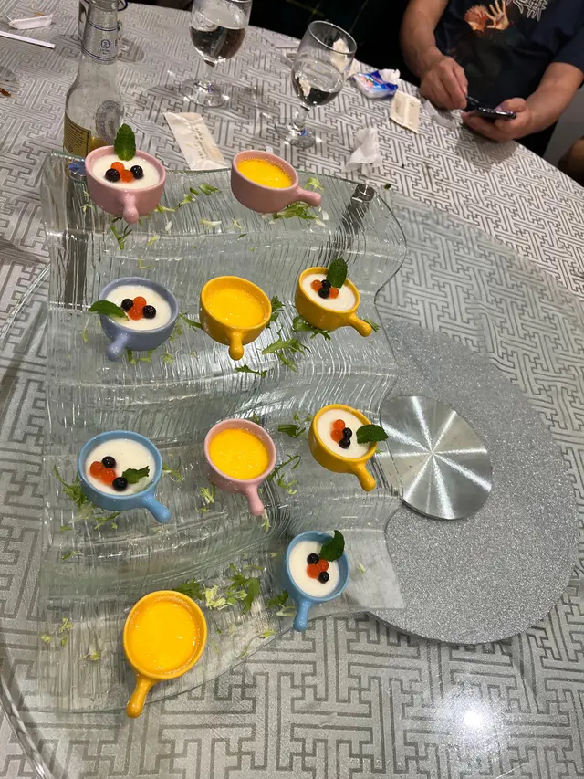 最後以甜品結束豐富晚餐👏🏻👏🏻賣相別緻,甜品方面有凍食嘅焦糖燉蛋及雙皮奶,亦有熱食嘅紅棗糕!