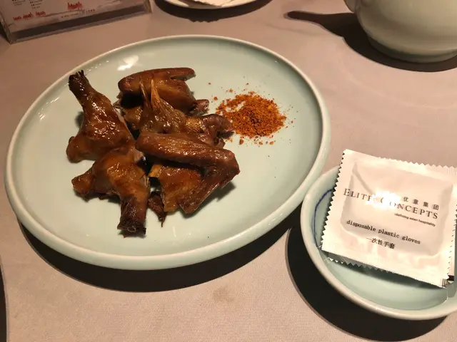 皇子鴿熱騰騰上桌,雖然體積比較少,但外皮香脆,肉質柔嫩但結實,不會一扭開鴿肉就散開,肉汁完全鎖住在裏面,沒有油膩感,另外非常貼心付送手套,食得方便。
