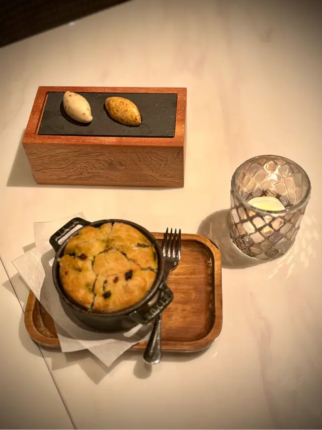 🥖上枱第一樣係Home Baked嘅蔥油麵包,新鮮熱辣。重點係佢自家製兩款牛油:一款XO醬沙茶味,鹹香有層次;另一款係煙燻鱔味,入口豐腴如Pate,食落去超有驚喜,令我回味無窮。