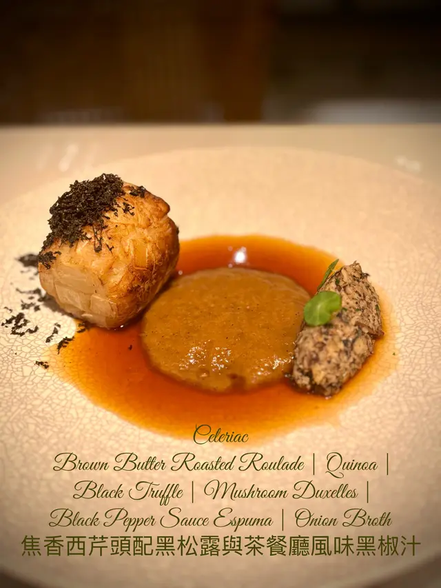 焦香西芹頭配黑松露與黑椒汁