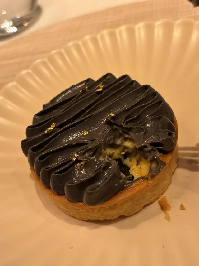 底層用黑芝麻做撻皮,中間有鹹蛋黃同糯米丸子,面層係黑芝麻朱古力醬,配埋用日本豆腐做嘅雪糕,芝麻味香濃,豆腐雪糕就超順滑,食完成餐好圓滿。