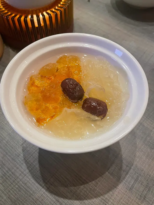 桃膠的韌性與雪耳的清脆形成了美妙的對比,紅棗的甜味則增添了整體的風味,是完美的餐後小點。